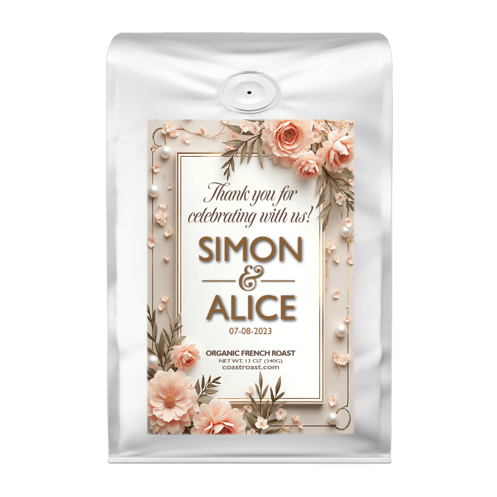 Coast Roast is now offering customized coffee bags as wedding favors! Show guests your appreciation and let them remember the special day with personalized coffee bags. Design your own custom label and choose any preferred organic coffee variety. These special bags are also perfect for engagement parties and bridal showers!